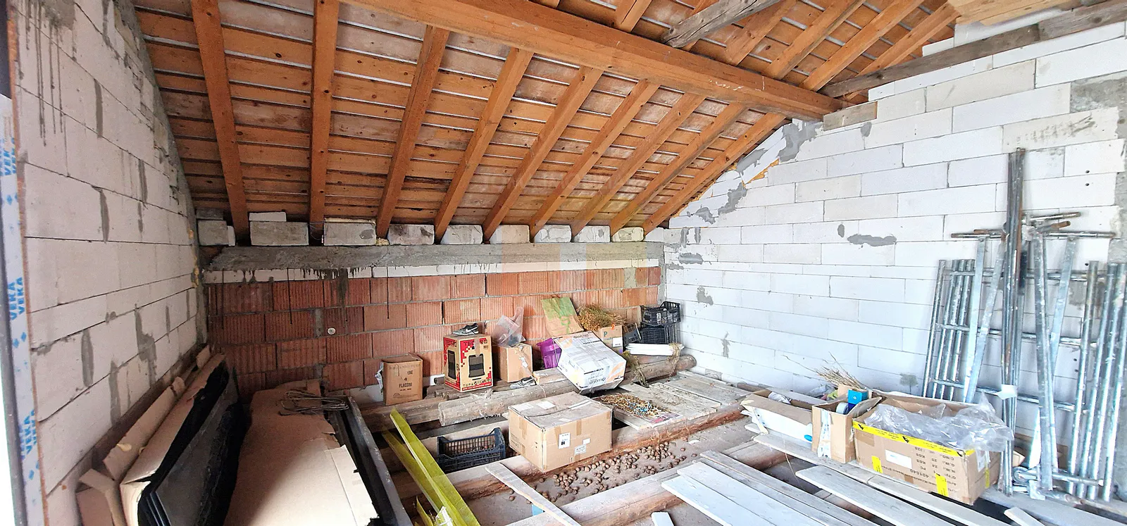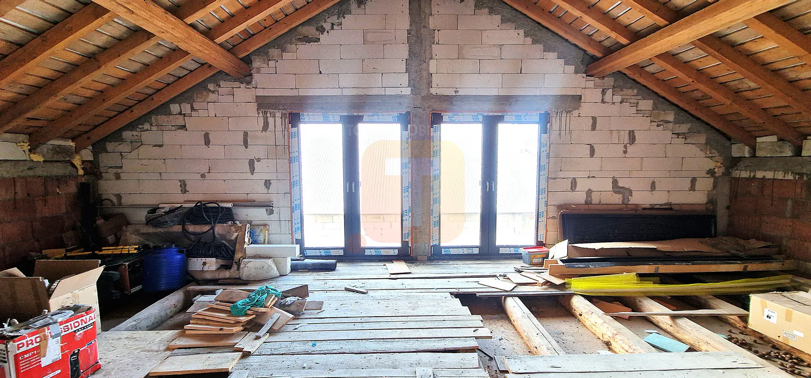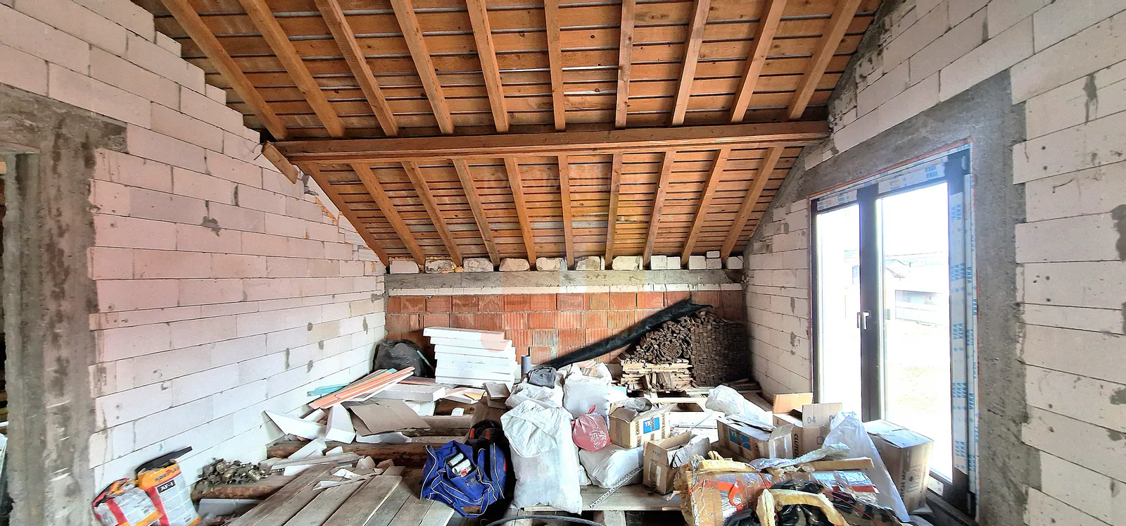 Interiorul se află în stadiu de semifinisat, iar mansarda este un spațiu deschis, compartimentarea finală nefiind încă realizată, ceea ce permite configurarea camerelor în funcție de preferințele viitorului proprietar.