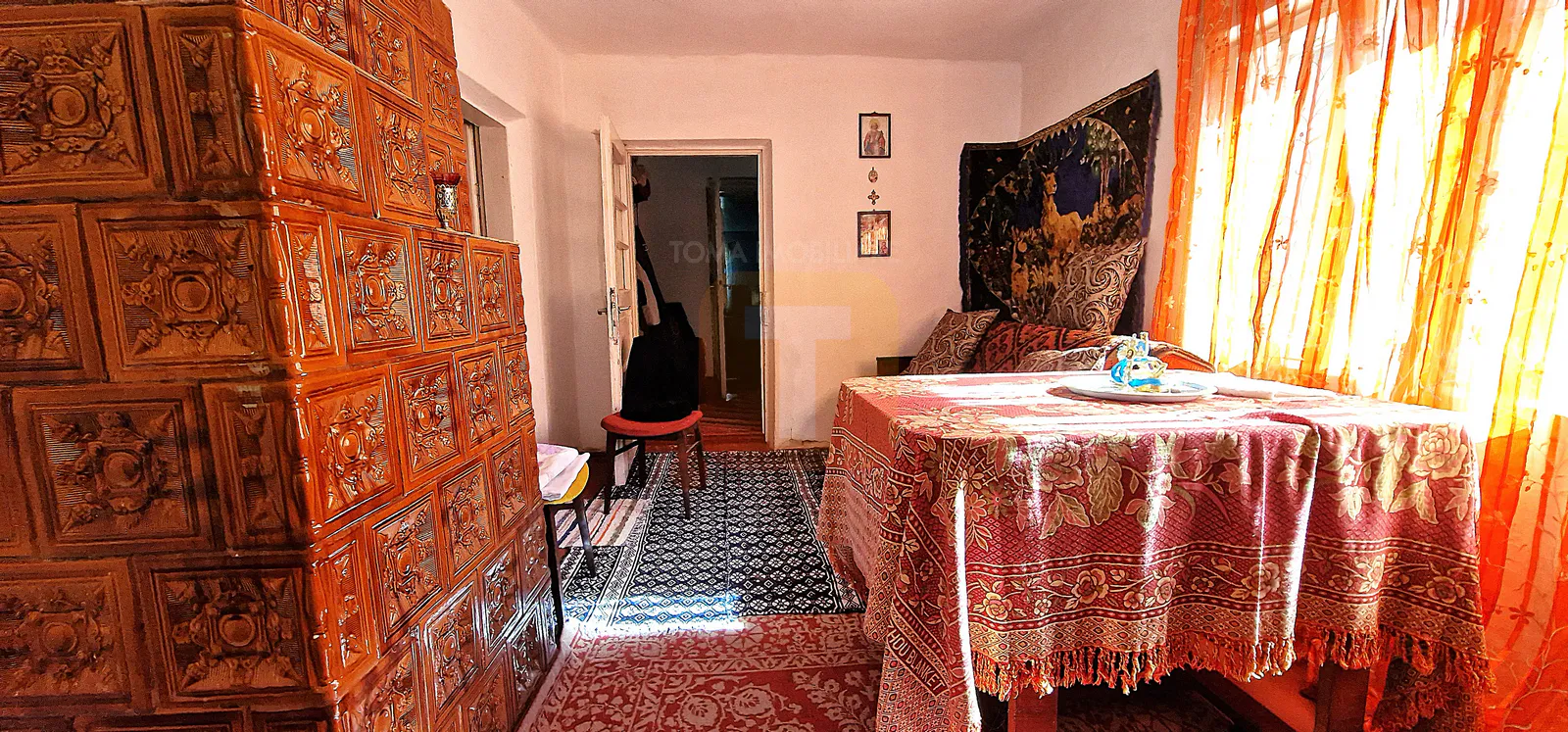 Pe acest teren regăsim o casă solidă, construită în anul 1962 din cărămidă, cu o suprafață utilă de aproximativ 140 mp. Compartimentarea cuprinde 5 camere, oferind spațiul necesar pentru o familie numeroasă. Vreau să fiu onest încă de la început: imobilul are un grad de uzură ridicat și necesită renovare completă. Însă, pentru un cumpărător cu viziune, acest aspect este o oportunitate de a personaliza fiecare detaliu. În completare, curtea găzduiește anexe (garaj și magazie) în suprafață de 53 mp, extrem de utile pentru depozitare.